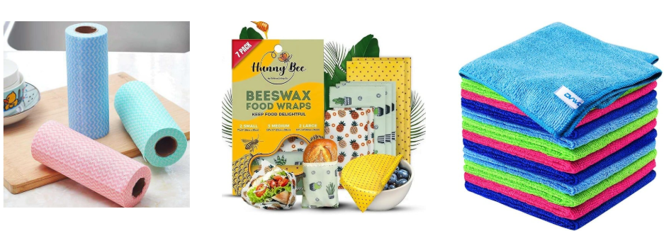 Paper towels, cling film, and disposable wipes add up over the year. Replace them with reusable alternatives: